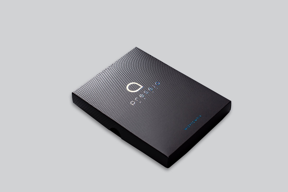 Wzornik wizytówek i uszlachetnień stworzyliśmy z myślą o pokazaniu możliwości drukarni Presejo w kompaktowej formie. Dedykowany jest wszystkim firmom, w szczególności agencjom reklamowym, drukarniom i grafikom.